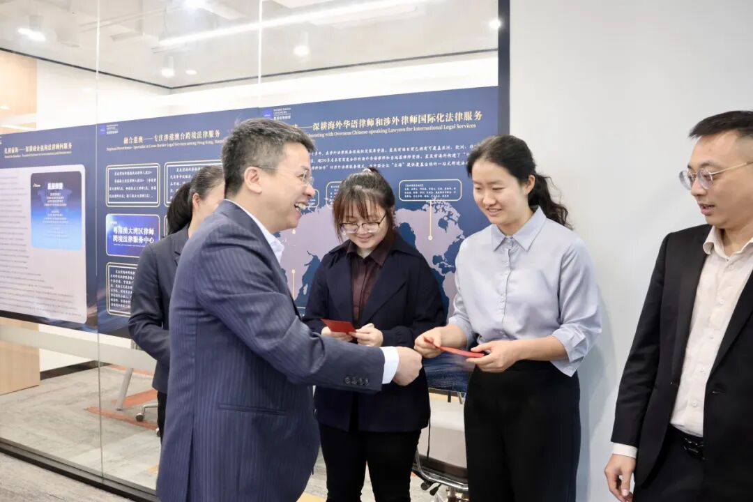 活动伊始,在前海分所主任谢永艺的陪同下,总所一行参观了分所全新升级的现代化办公环境。此次焕新不仅是硬件的提升,更是发展新气象的直观展现:精心设置的“粤港澳大湾区律师专属办公区”与“打造涉外涉港澳台跨境法律服务精品所文化墙”,充分彰显了前海分所扎根前海,融合粤港澳大湾区、对接国际化的战略定位与专业风貌。