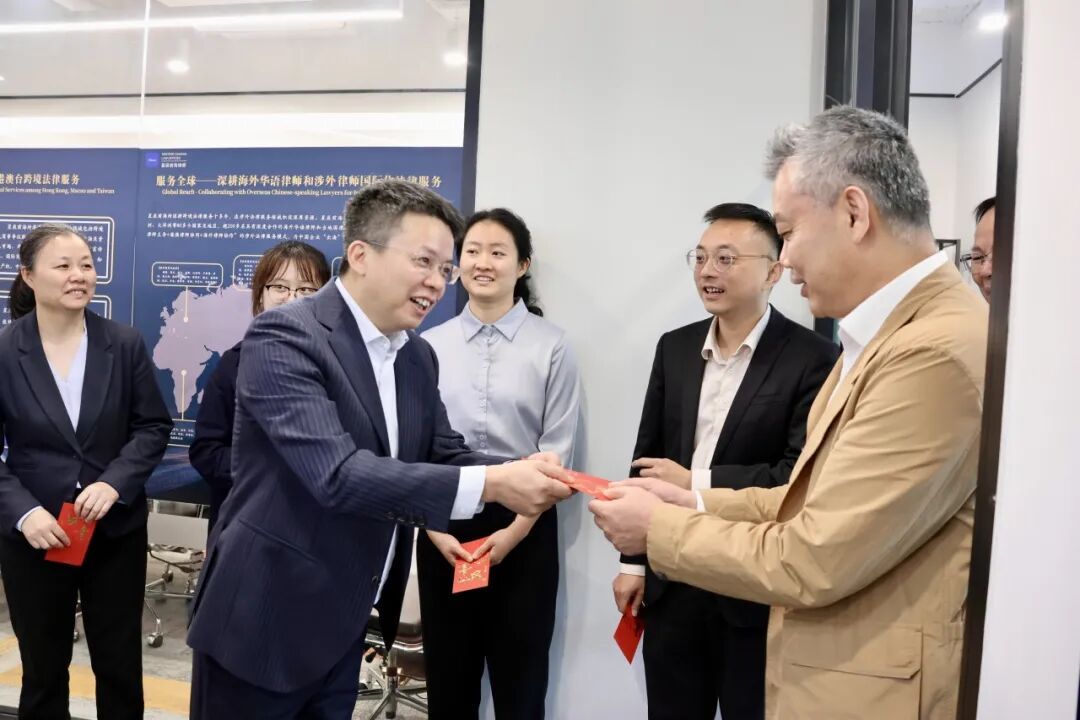 现场洋溢着喜庆祥和的氛围。钟永标主任亲自为前海分所的每一位内地同事和港澳同事派发新春利是,将总所的深切关怀与马年“策马扬鞭”的美好祝福传递给大家。前海分所谢永艺主任也满怀感激之情,向分所同仁及到访的总所领导、同事派发利是,诚挚感谢总所一直以来的关心支持。这一温馨互动,生动诠释了星辰大家庭“同心同行”的深厚情谊与紧密联结。
