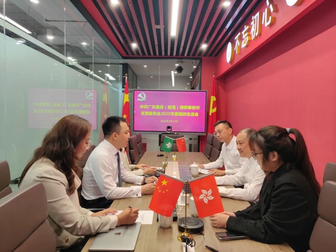 2026年3月13日,星辰前海党支部在广东星辰(前海)律师事务所会议室召开组织生活会,会议由前海党支部书记谢永艺主持。