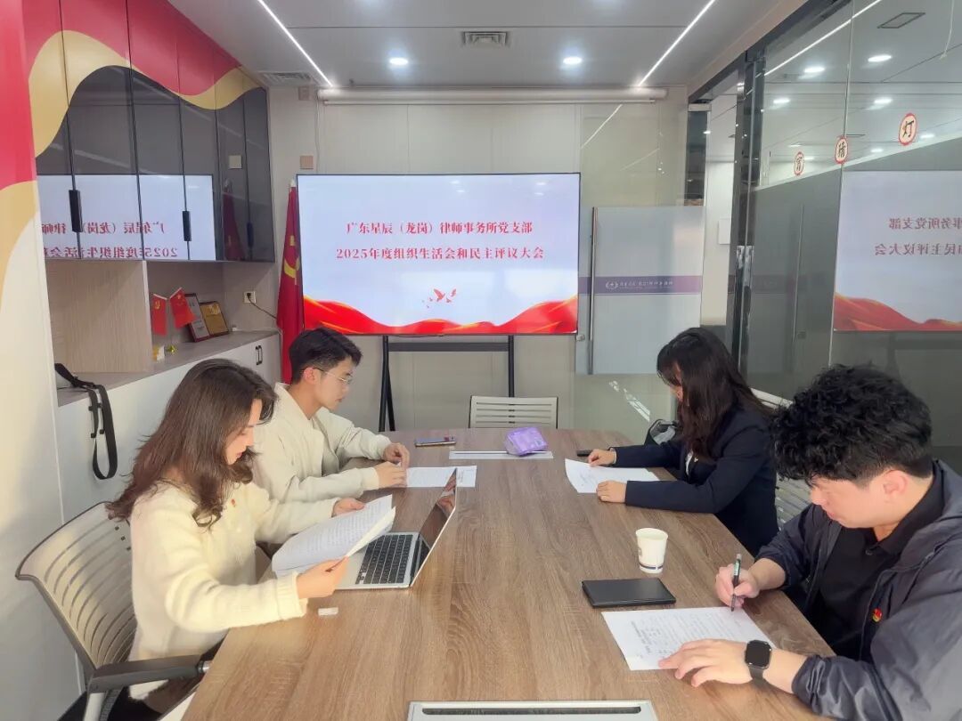 2026年3月12日至16日,根据深圳市律师行业党委《关于开展2025年度基层党组织组织生活会和民主评议党员的通知》要求,中共广东星辰律师事务所总支部委员会(下称“星辰党总支”)及所属五个支部,相继召开了2025年度组织生活会并开展了民主评议党员工作。